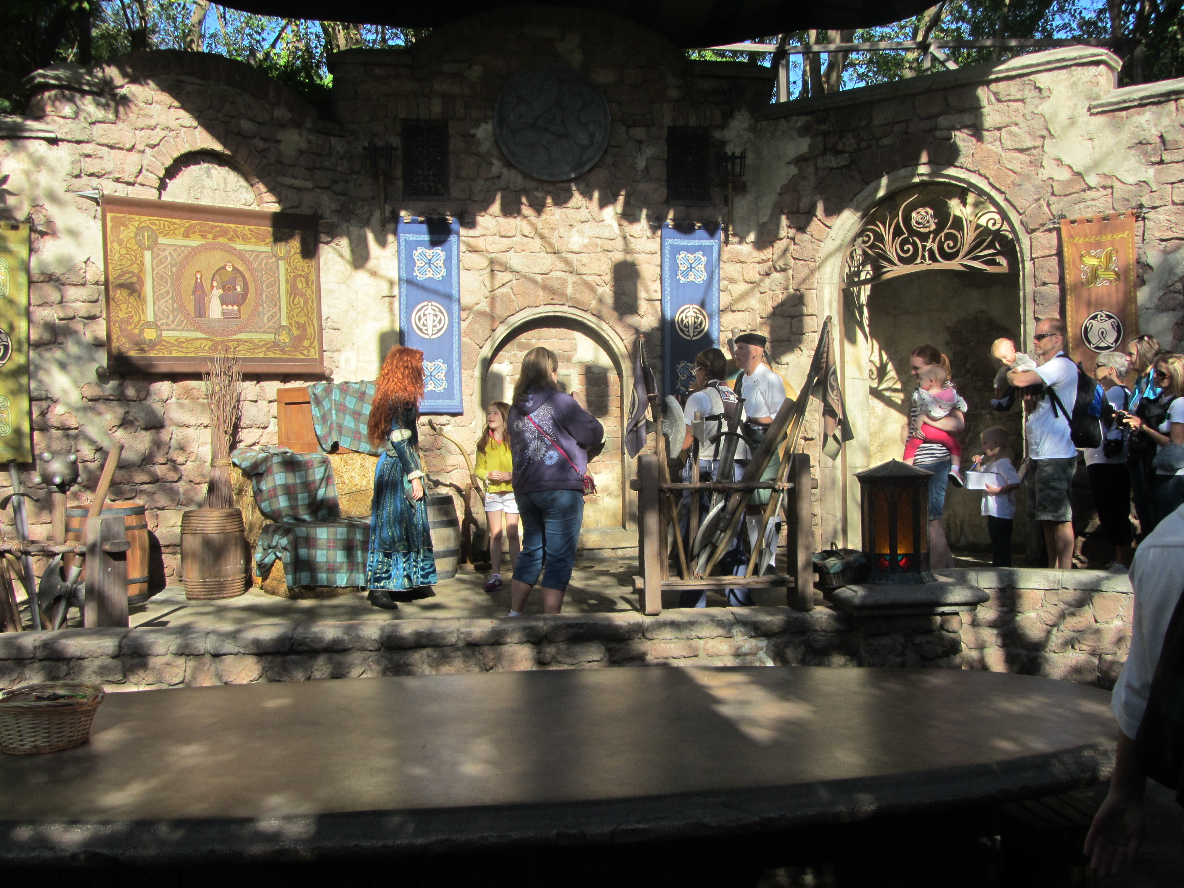 Thursday morning we had plans for breakfast at Cinderella’s castle. Merida was right down the path from there so right from breakfast we went. It was 25 minutes before she was even due to start her day the line was forming. We took our place and patiently waited. AT 9:15 the door opened and in the line moved. They have set her up in an area that was being used for Rapunzel the last time we were at the park. From what we are told during the initial roll out kids were allowed to shoot an arrow with her but it seems that has stopped. I can only assume that it took too long. For those wondering what happened to Rapunzel, it seems that she will join the new Princess Fairytale Hall currently under construction.